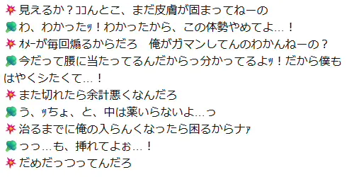 お尻が完治するまでえっちしないってことになったけど、早くえっちしたいデキュが「まだ治らないの…?」って毎回聞いてきてカチキかわいそう!!